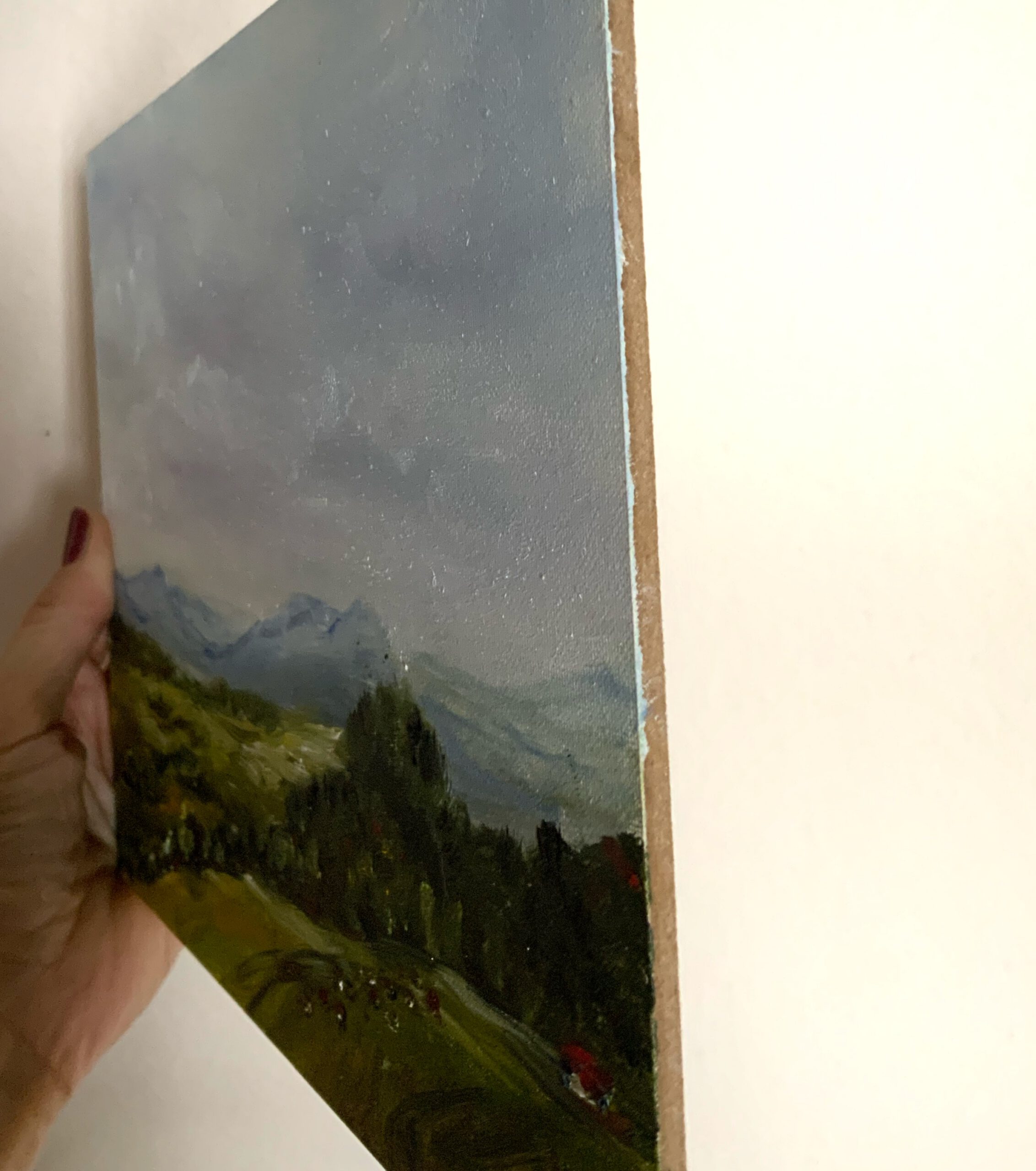 The painting is executed using traditional oil techniques with visible, expressive brushstrokes that add texture and depth. Painted on canvasboard, it combines durability with the authentic surface of canvas, making it ideal for both display and collection.